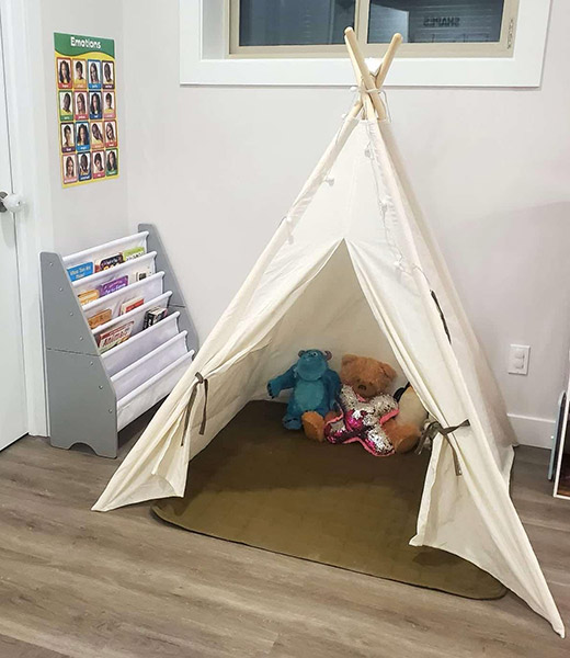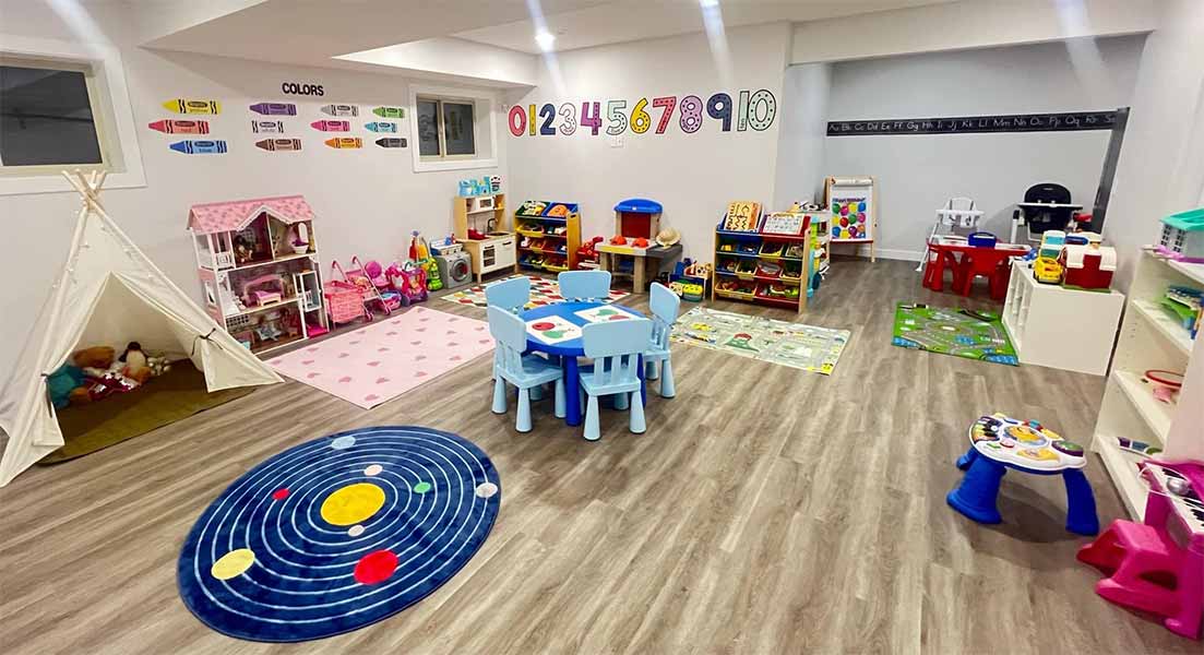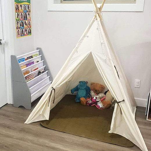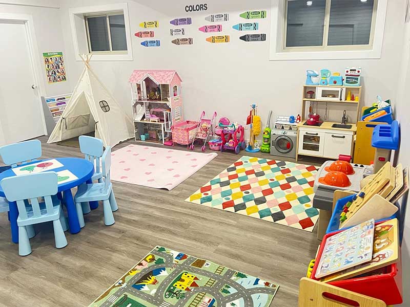 Mona’s day home is a warm and inviting space for children. She has a great variety of activities; dress up play, loose parts, blocks, creative resources, kitchen play, and so on. Mona’s resources are well organized, and the children can easily make choices. She has created a cozy reading spot for children to enjoy.