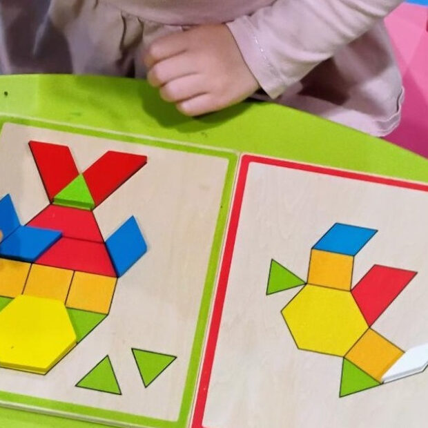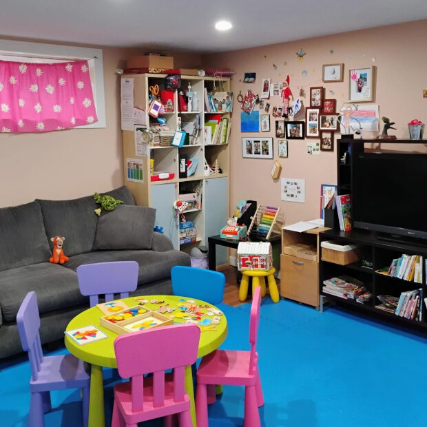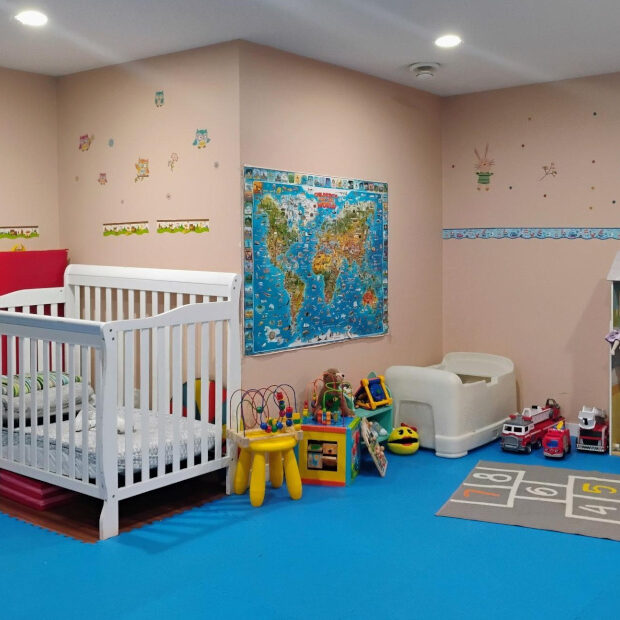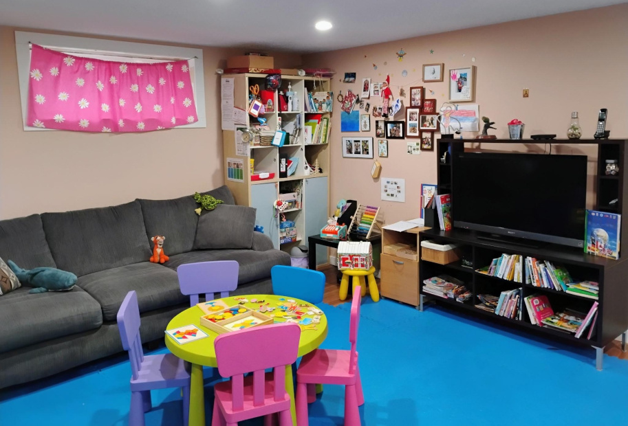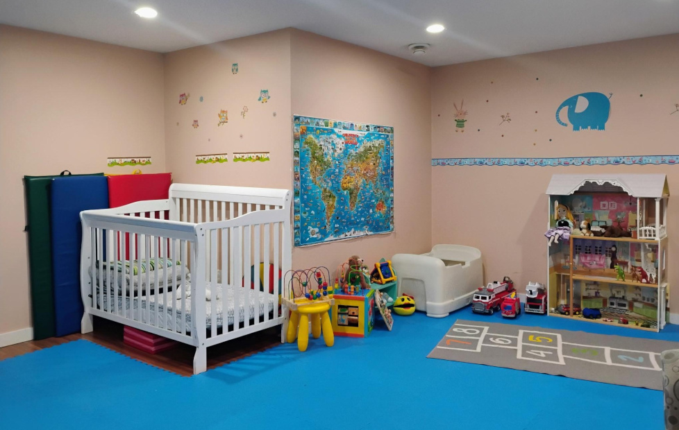 Biba offers a large and inviting indoor and outdoor environment where children can explore different activities such as the puppet theater, creative materials, and literacy items. Biba bases her program plan on her observations of the children and their interests and abilities.