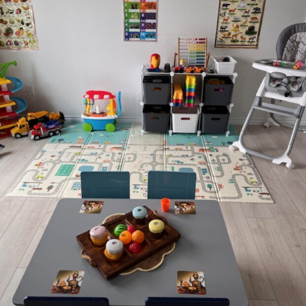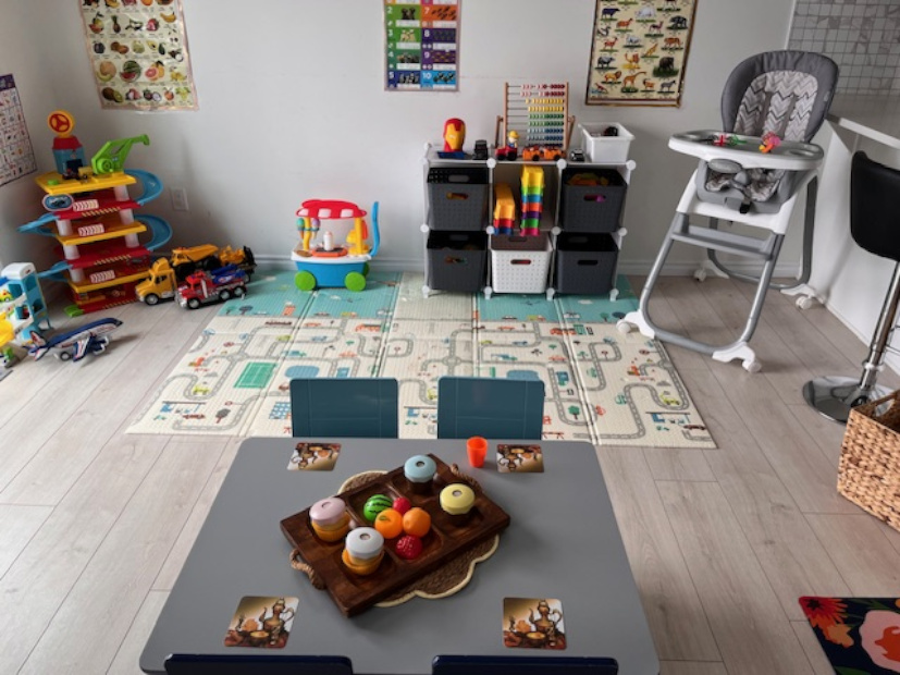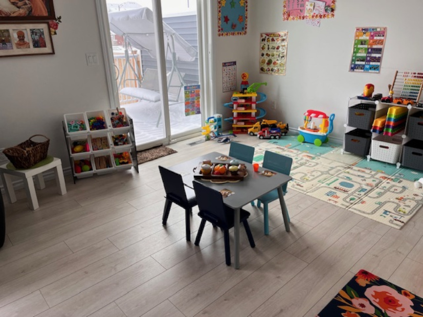 Kinjal’s day home space is organized to support both independent and group play. She believes children are capable, curious learners who thrive through play.