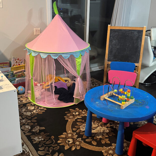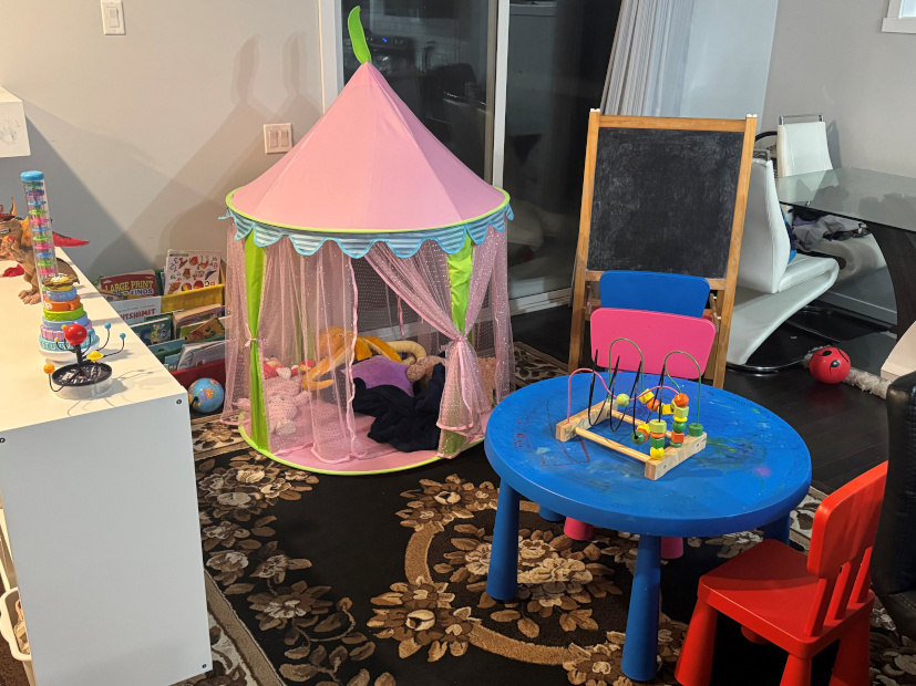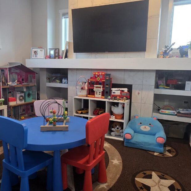 Gaganpreet has a comfortable play space for the children organized for both individual and group play. She understands children have different interests and ensures her resources are accessible so the children can make independent choices. There is a variety of sensory, creative, and literacy activities for a variety of ages. She has natural items and loose parts for imaginative play.